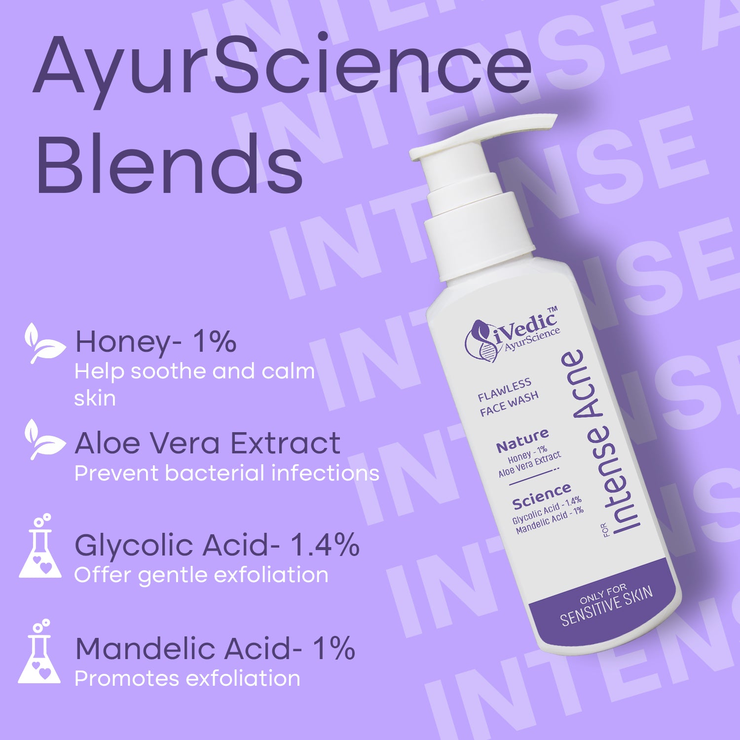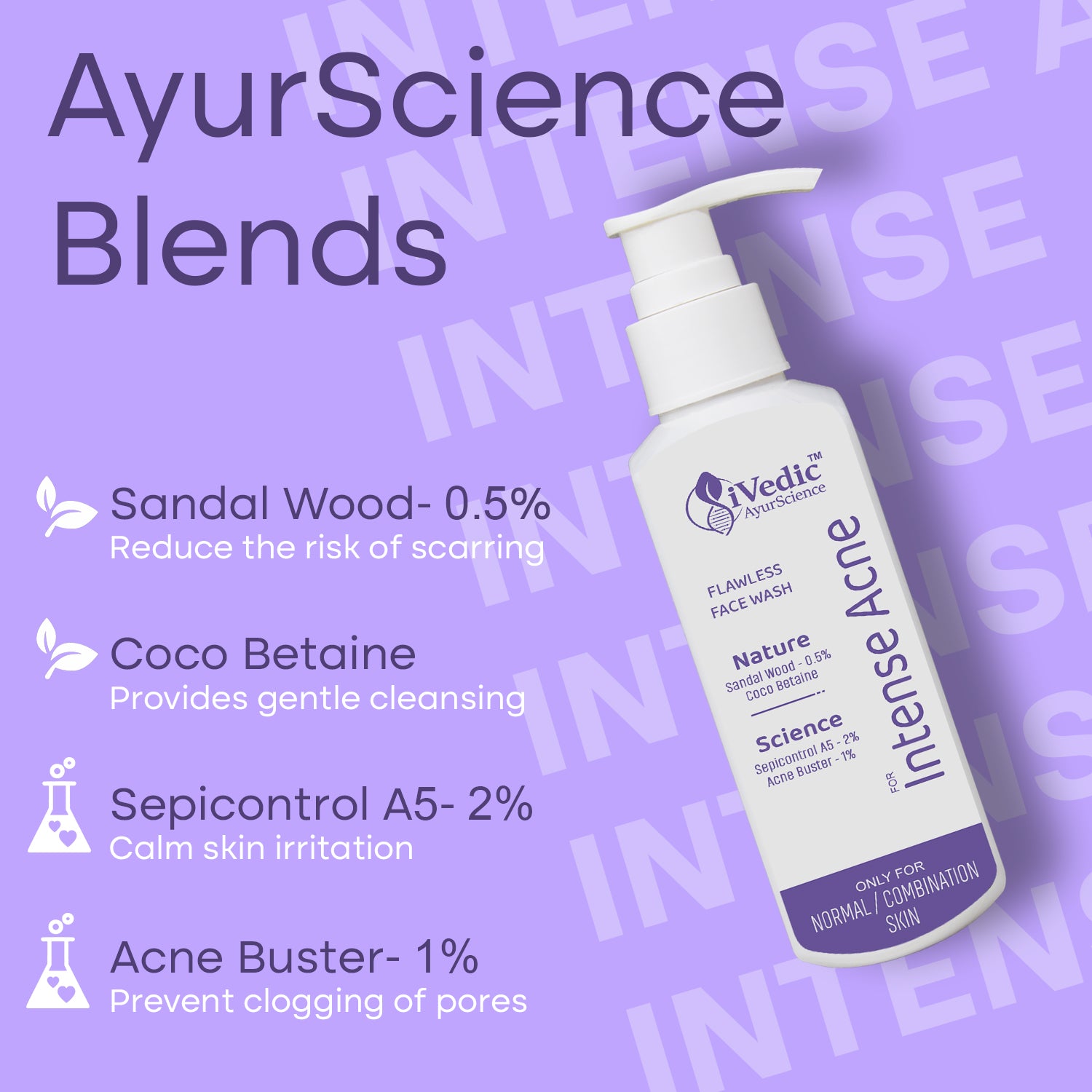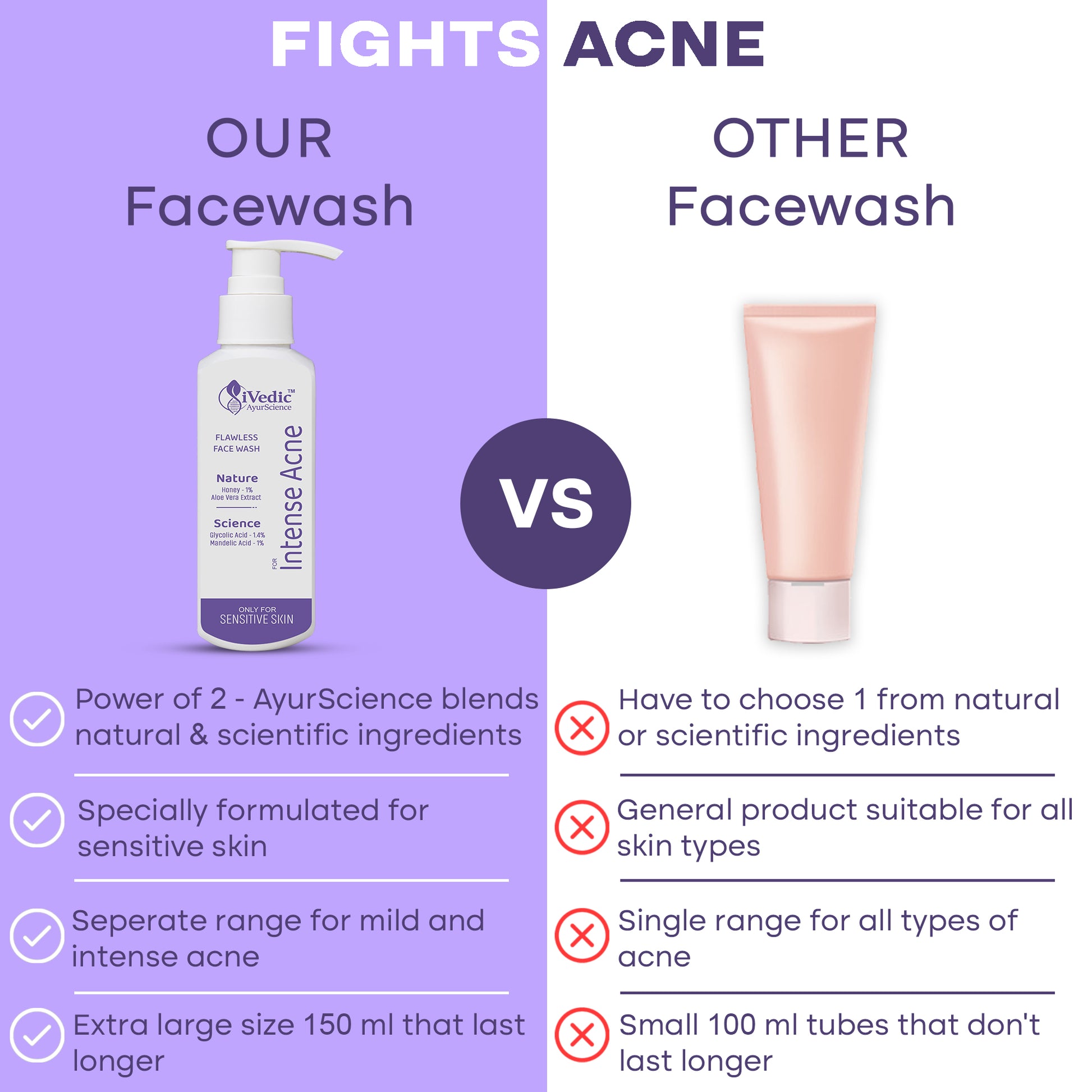 iVedic AyurScience Anti Acne Face Wash Cleanser for mild and severe acne for each skin type with a blend of natural and scientific ingredients to give you the best facewash for acne cleansing.