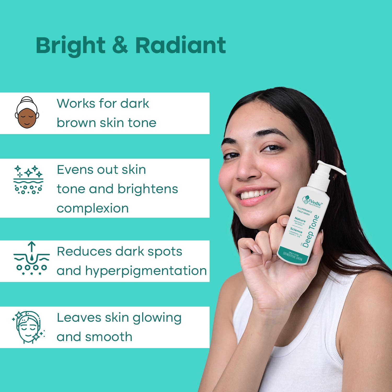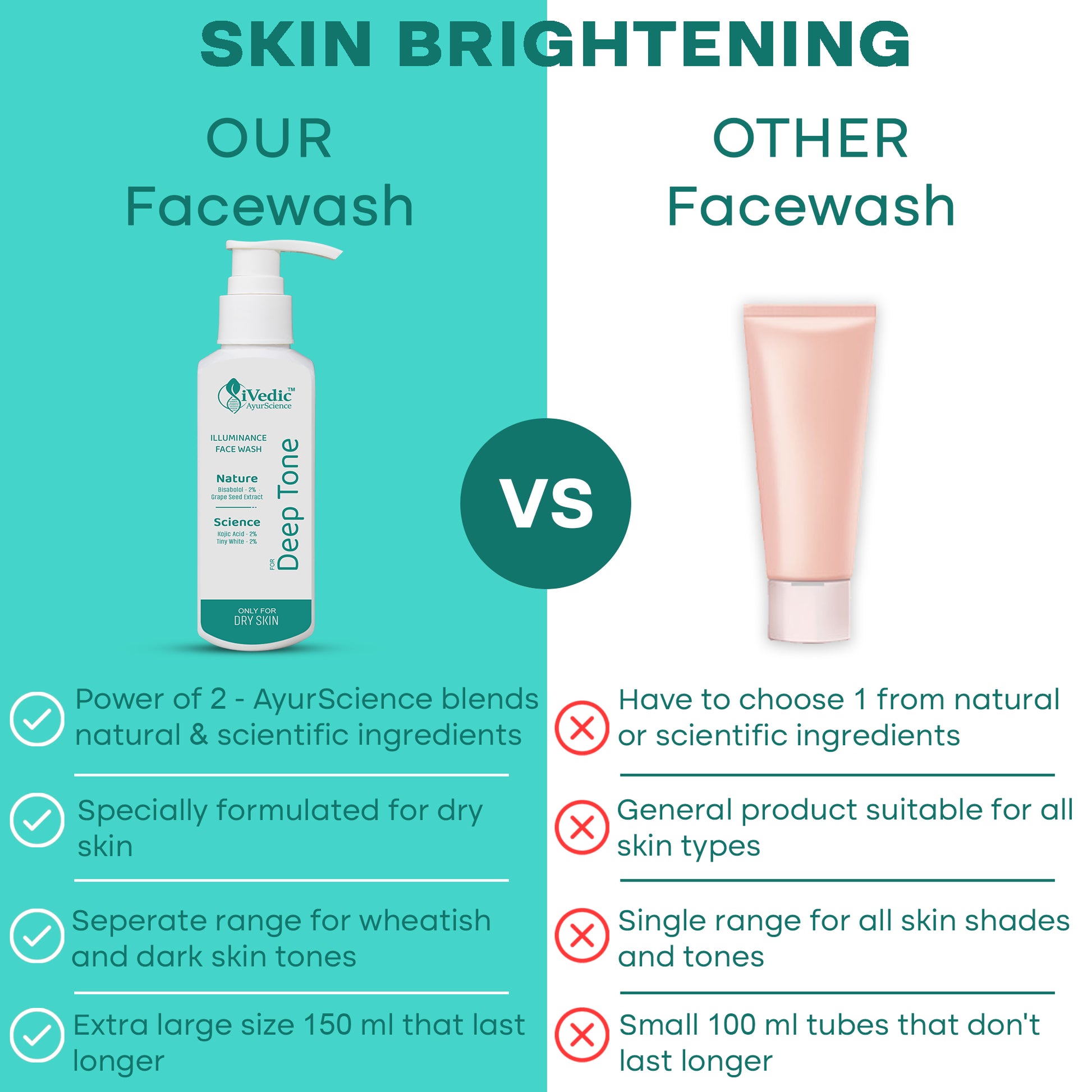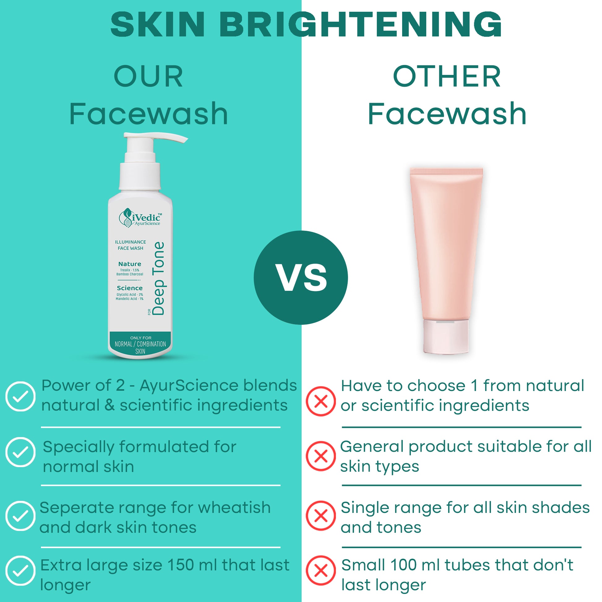 iVedic AyurScience Skin Brightening Face Wash Cleanser for wheatish and deep brown skin tones with a blend of natural and scientific ingredients to give you the best facewash Trial pack for a glowing skin and remove tan.